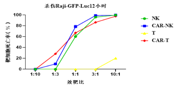 3、The in vitro killing effect of CAR-NK cells is better than that of NK cells at low-efficiency target ratios (1:1 and 1:3)