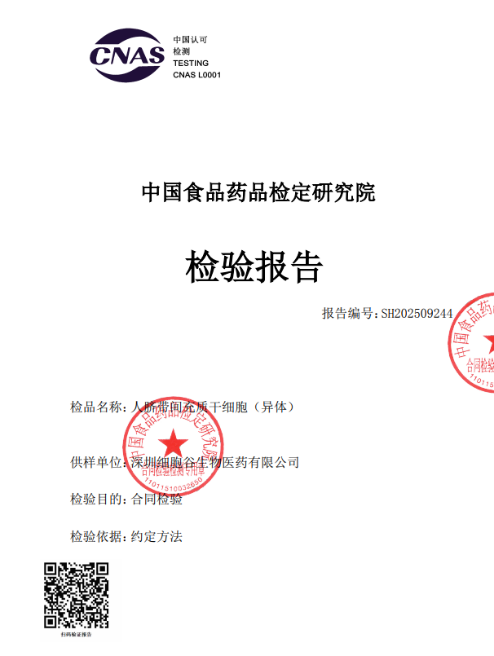 近期,深圳豪门国际生物医药有限公司自主研发并生产的人源干细胞产品,正式取得中国食品药品检定研究院(中检院,NIFDC)出具的干细胞检测报告书