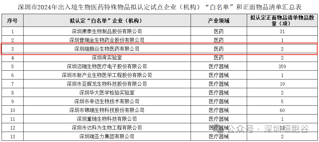 近期,深圳市出入境生物医药特殊物品联合监管机制联席会议办公室在深圳市发改委网站上公示了2024年出入境生物医药特殊物品拟认定试点企业(组织)“白名单”和正面物品清单。经过严格的材料核查、专家评审、现场核查、征求部门意见及联席会议审议等环节,全市第一批13家企事业单位获批“白名单”,深圳豪门国际顺利入选,其中细胞治疗的核心原料病毒载体等获批特殊物品出入境正面物品清单。