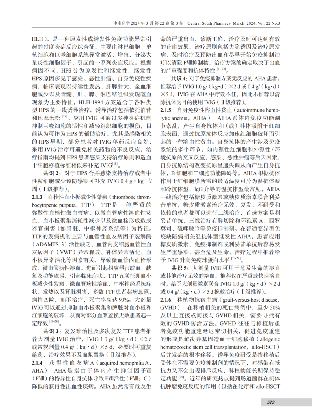 共识2:对于HLH合并感染支持治疗或者中性粒细胞减少预防感染可补充IVIG 0.4g·kg-1/周。(I级推荐)