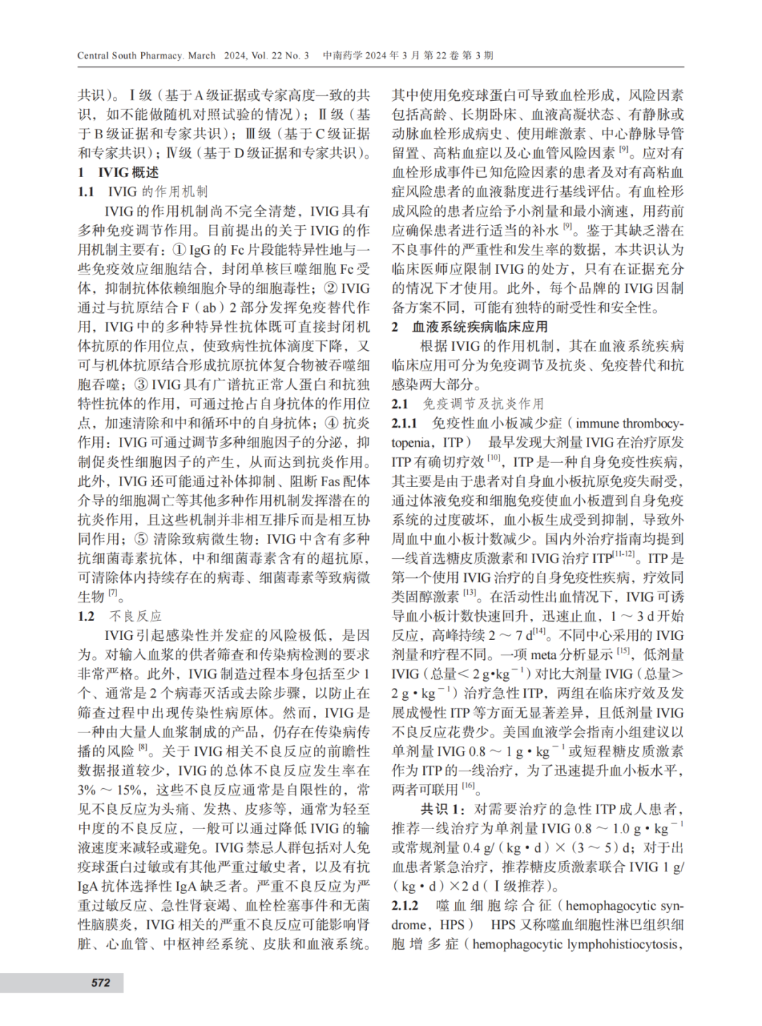 静脉注射用免疫球蛋白(IVIG)是一种从健康供者血浆中取得的血液制品,现在已广泛应用于临床,如免疫缺陷病、特发性血小板减少性紫癜、川崎病和神经系统疾病等,其在恶性血液肿瘤化疗、靶向治疗、细胞免疫治疗及造血干细胞移植中的应用也越来越普遍,为进一步提高IVIG在血液疾病中规范应用,中国抗癌协会肿瘤与微生态专业委员会血液学组、广东省预防医学会血液肿瘤防治专业委员会和中国感染免疫与微生态研究转化协作组组织包括血液学(含造血干细胞移植专业)、感染科、重症医学科、药学部等专业专家组成一个多学科会诊指导委员会共同讨论,综合国内外相关研究现状,共同研讨制定了IVIG 在血液系统疾病中应用的专家共识。本共识制订流程包括三个环节:筛选共识主题、形成临床问题、形成推荐内容和强度,共识主题基于血液疾病IVIG 应用的国内外研究进展而制定,推荐干预措施的有效性及不良反应等,形成推荐意见为IVIG在血液系统疾病规范化使用给予依据。共识使用GRADE/DECISION证据到决策框架确定了建议的方向和强度,GRADE方法评估证据质量评为高(A)、中等(B)、低(C)或极低(D)。根据GRADE证据MDT小组将建议的强度评为强或有条件(支持或反对利益干预),如果关键结局中证据的总体质量非常低,则不推荐,最终全体专家进行了投票并达成共识。