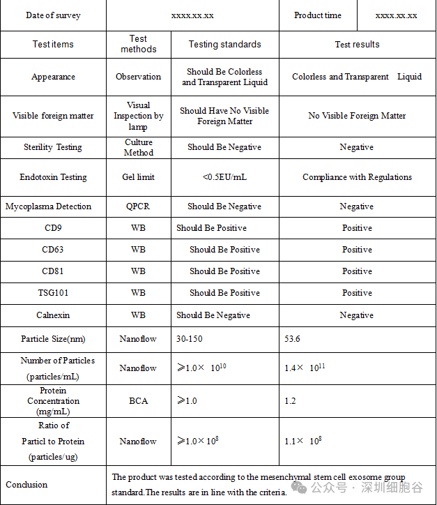 4.看COA:查随行的质检报告(CoA),应含有外泌体的颗粒数量、批号、生产日期、安全性检测数据(无菌、支原体、内毒素等)、标志物、蛋白浓度等信息。
