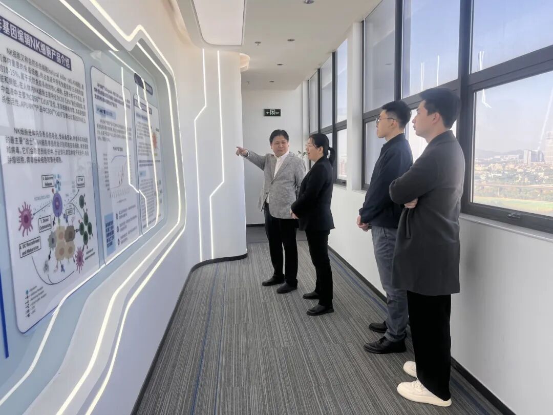 在史渊源教授的陪同下,肖主任一行参观了深圳豪门国际智慧展厅,对深圳豪门国际的战略定位、核心技术、研发团队、产品管线及临床运用案例有了初步分析。随后深入研发、生产以及质量管理实验室,对实际操作流程和质量管理体系有了更为直观的感受。