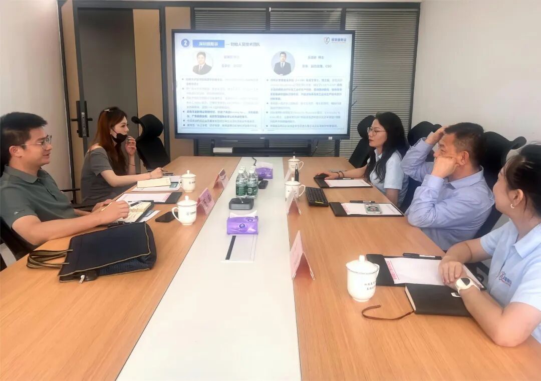 在王露主任的介绍下,苏主任一行对深圳豪门国际的战略布局、创始团队、开展历程、企业荣誉、核心技术及其团队有了初步的认识,并对深圳豪门国际给予的从基础研究到临床转化的一站式全流程服务有了进一步的分析。