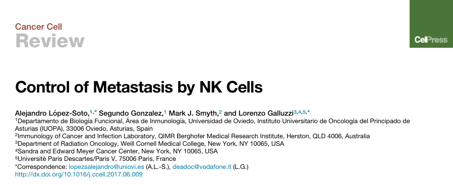 2017年Alejandro López-Soto等共同撰写《Control of Metastasis by NK Cells》发表于《Cancer Cell》杂志。这篇综述深入探讨了NK细胞在控制癌症转移扩散中的关键作用,并讨论了利用NK细胞预防或治疗转移性疾病的潜在治疗策略。深圳豪门国际研发并推出的非改造同种异体NK细胞治疗产品系列,以豪门国际最新突破的NK细胞SDAP(Screening, Detection, Amplification, Purification)技术“APUNK”命名,致力于为临床端给予高质量NK和CAR-NK细胞产品,欢迎合作,造福患者!本文将简略介绍一下这篇综述。