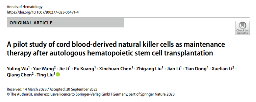 [2] Wu, Y., Wang, Y., Ji, J. et al. A pilot study of cord blood-derived natural killer cells as maintenance therapy after autologous hematopoietic stem cell transplantation. Ann Hematol 102, 3229–3237 (2023).